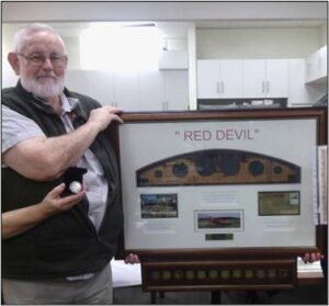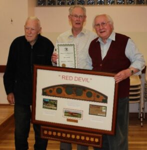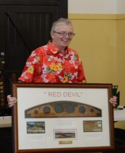 Michael produced two special framed covers, one to Carol Winter and the other to James Morrison. Michael also highlighted his skills in woodwork and turning by producing a fantastic special trophy propellor, which was presented to James Morrison for carrying Michael and the covers at no cost to our society.