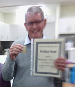 The Briskham trophy is awarded for meritorious service to philately in South Australia.